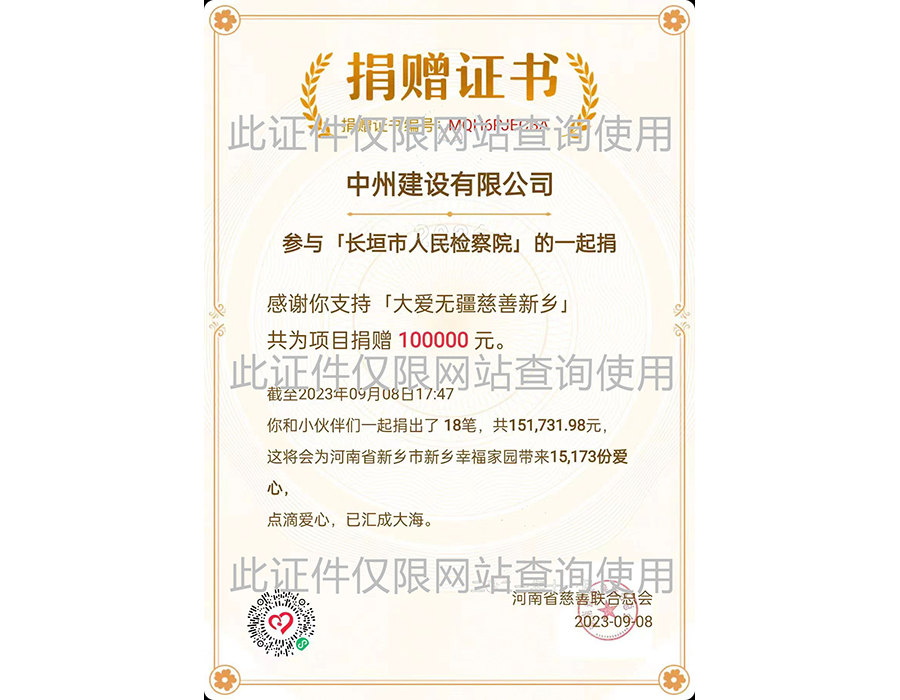 2023年河南慈善联合会捐赠证书