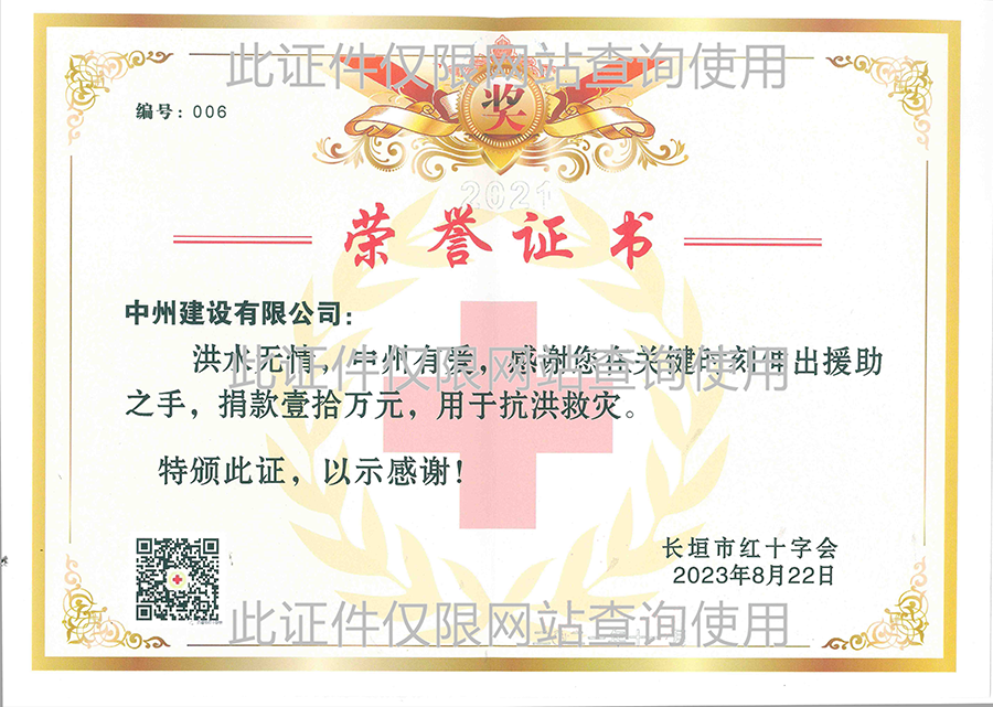 2023年长垣市红十字会捐款荣誉证书